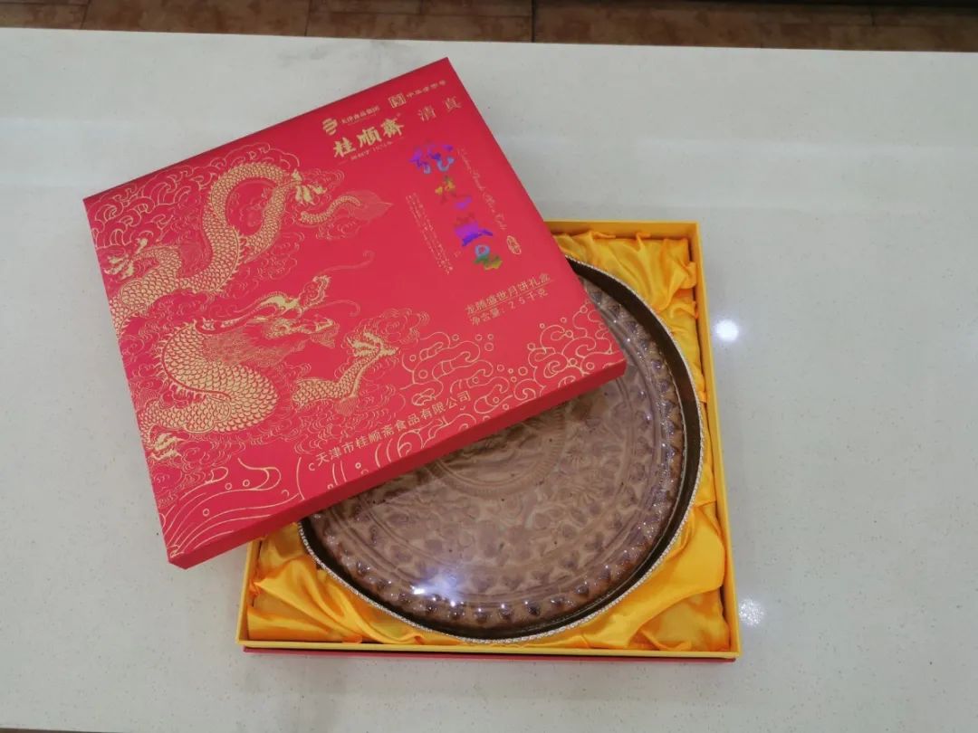 一块月饼一份思念,我们的津味月饼,甄选天然食材,采用传统工艺制作,三种口味,刷新您的味蕾,回忆老味道。