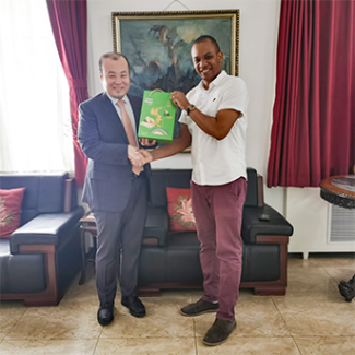巴巴多斯大使助理(右)与中宇力度创始人邢凤亮(左)