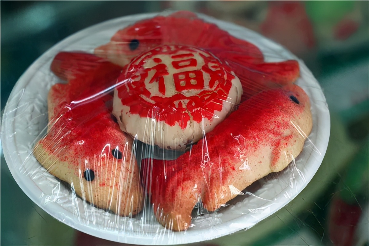 白皮18块一斤,套装里还有鱼形状的,寓意:富贵有余,馅是豆沙的——