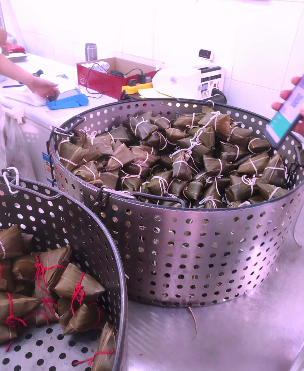端午节的粽子是一大亮点,很多师傅现场包现场煮,有时也会排长队,而且在4月份就早早开始卖粽子了。