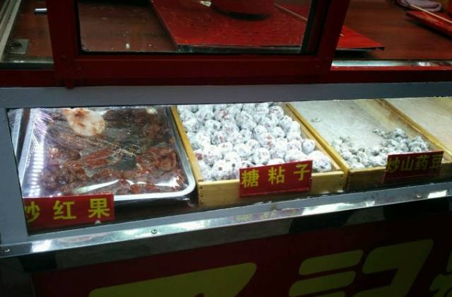 糖堆又大又好吃,面果,酸甜正好的红果而且特别干净,让人吃着放心。现在一律3.5元。还卖糖粘子,小山药豆,杏脯,红果烙,都是自己做的!