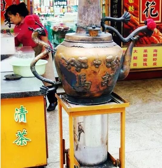 马记茶汤位置在南市食品街一层,一进门往里走20米左右就看了一个龙嘴大铜壶,马记茶汤的招牌也很显眼!各种好吃的馅儿料,经过大茶壶里面热水的一冲,香喷喷,粘稠稠的茶汤就成了。