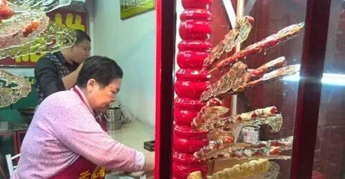 他家的糖堆儿都已经卖了很多年了,吃起来味道不错,不是特别甜。糖堆的种类有豆沙红果的糖堆,还有红果的,山药蛋的种类。