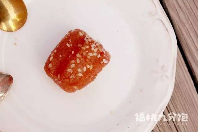 山楂饼的酥软外皮夹着一层酸甜山楂,不过一进嘴,两层就明显地分开,达不到贵妃饼的和谐统一。