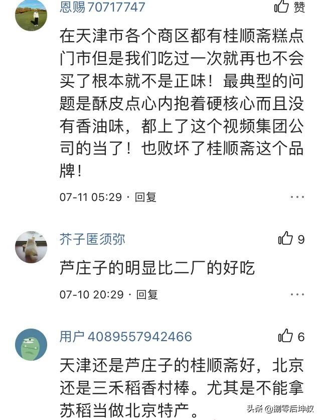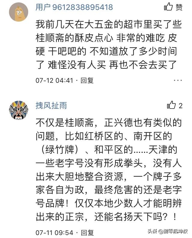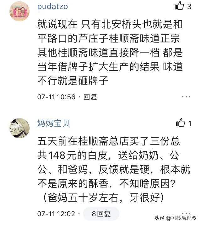 网友评论虽然众说纷纭,但是对于产品品质的要求,以及对于老字号品牌的情怀始终没变。换言之,老百姓认的是桂顺斋品牌这一副面孔,作为品牌的运营方,共同维护品牌的荣誉,则是企业义不容辞的使命和责任。