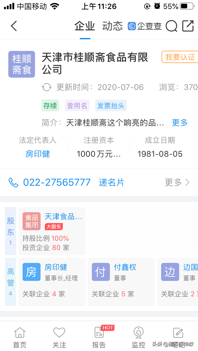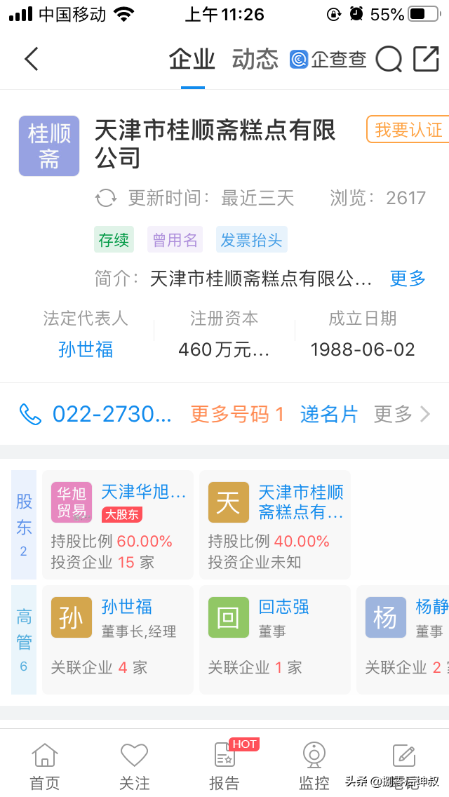 通过企业工商信息第三方查询平台发现,天津食品集团为天津市国资委全资公司,华旭集团为和平区国资委全资公司,二者皆属于国有企业。不同的是,食品集团旗下桂顺斋食品公司为国资股份,而华旭集团旗下的桂顺斋糕点公司目前为职工持股40%的混合所有制企业。