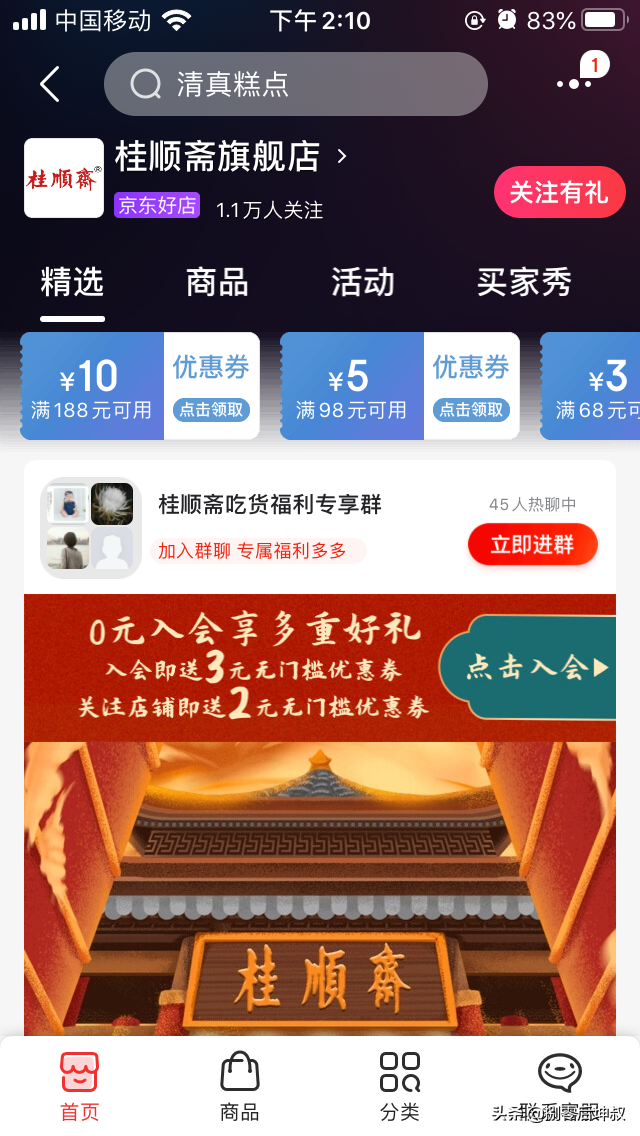 公开资料显示,食品集团桂顺斋20年9月份开通京东旗舰店,2016年2月份开通天猫旗舰店,而芦庄子桂顺斋也在2020年的6月份依托微信公众号开通了桂顺斋糕点微商城,采用门店自提加同城配送两种方式为消费者提供服务。