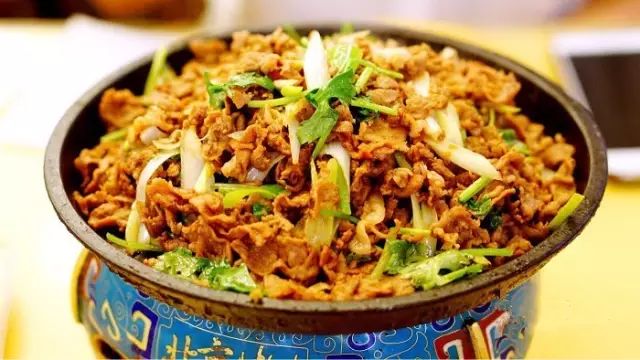 北京经营烤肉的餐馆数烤肉宛的字号老,创立于康熙二十五年,以烤牛肉为讲究。烤肉宛的牛肉,一斤肉准出0片形似柳叶、薄厚均匀的肉片。牛肉片里加入调料腌上个把时辰,再加料入味,拌上葱丝、香菜等,摊在松香缭绕的炙子上,木筷翻而炙熟。
