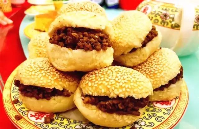 大顺斋创办于明代崇祯末年,店主刘大顺起初是做甜、咸火烧卖,后扩大经营,以制作风味独特的糖火烧而誉满京城。刚出炉的火烧外焦里嫩,带着红糖桂花和芝麻的香气,教人垂涎欲滴。除了糖火烧外,还经营各种清真糕点。