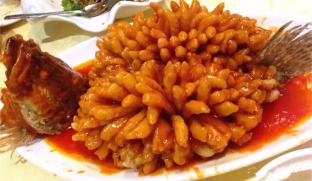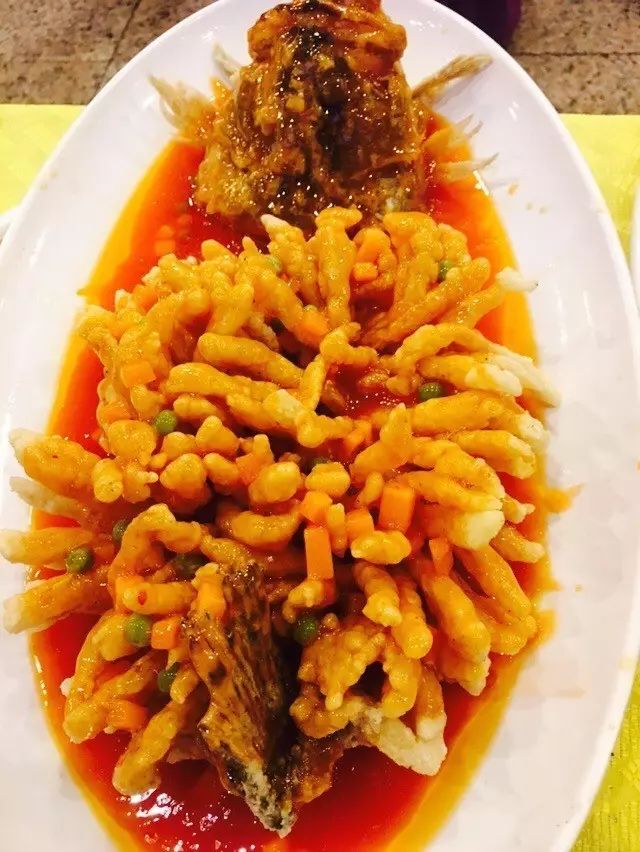 招牌菜一鱼四吃,一条鱼能做出四种吃法,头尾红烧改清煮做汤;中段鱼身,从中间鱼骨处劈成两半,一片糖醋,一片糟溜;鲤鱼的鱼子,营养丰富,可单独红烧。摆在桌面上实在令人赞叹!
