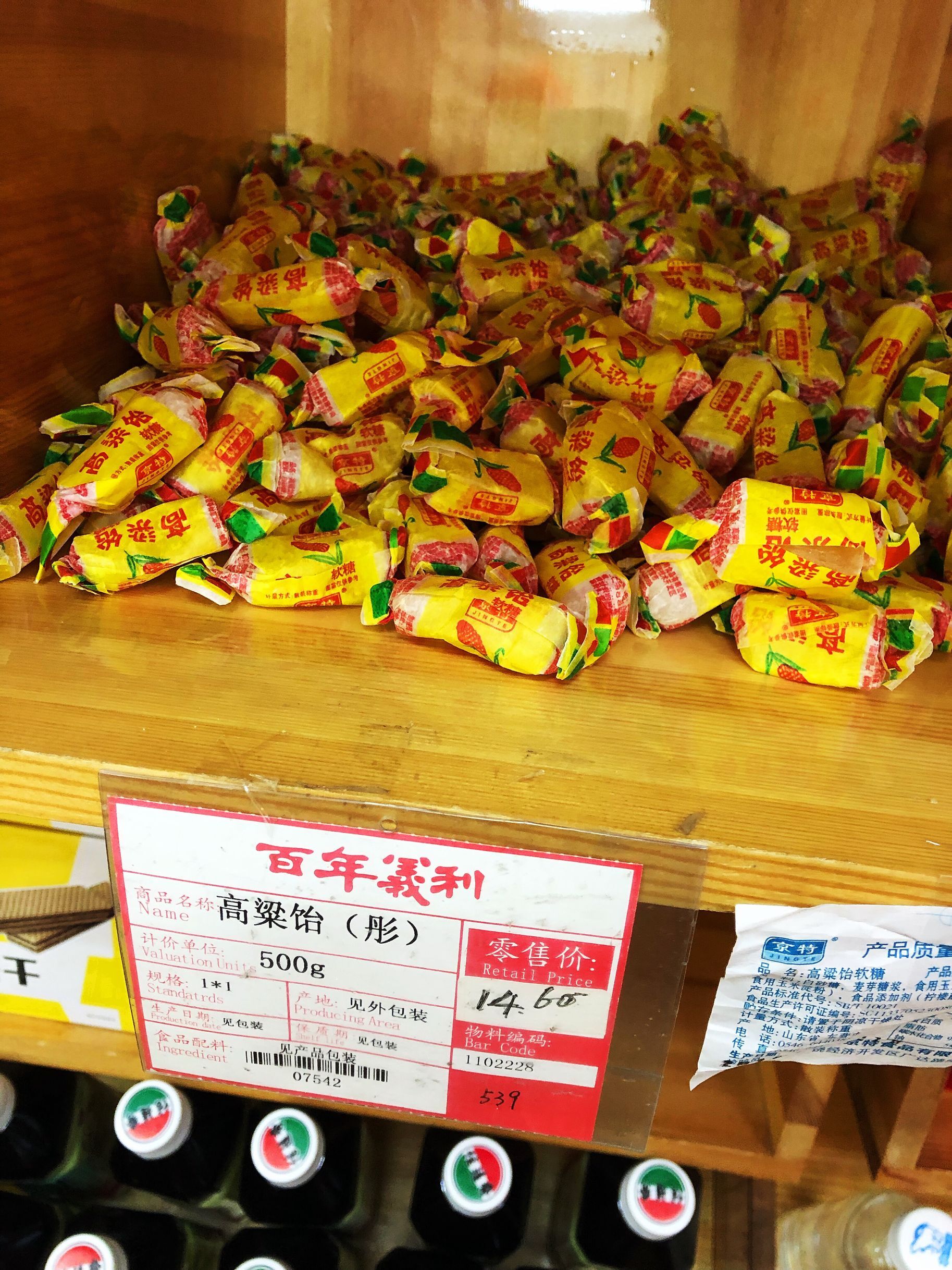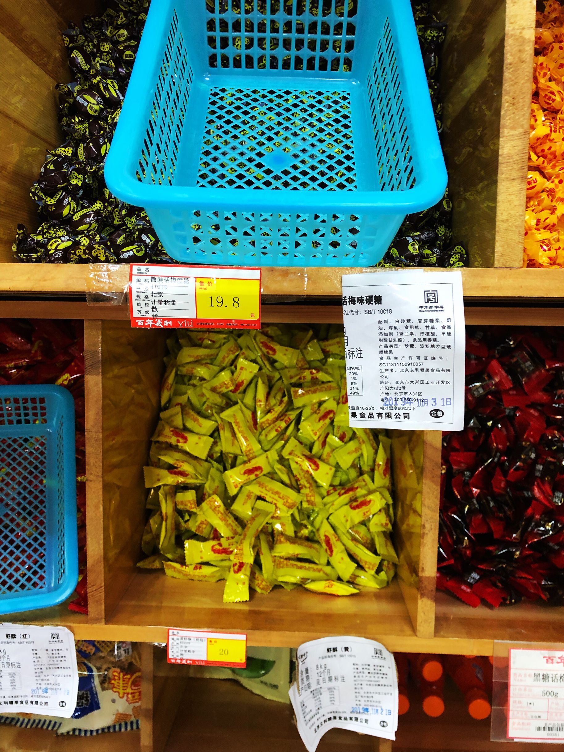 酸三色,大白兔,大虾酥,高粱饴,话梅糖,这些看着眼熟吗,亲切吧,太复古了,儿时的记忆,都是我们小时候吃的糖果,每个孩子的童年兜里都有几块酸三色和大虾酥吧,话梅糖原来是蜡纸包装的,现在是塑料包装了,没有蜡纸的那种质感了。高粱饴很多老人喜欢吃吧?其他店买不到的可以到义利买。