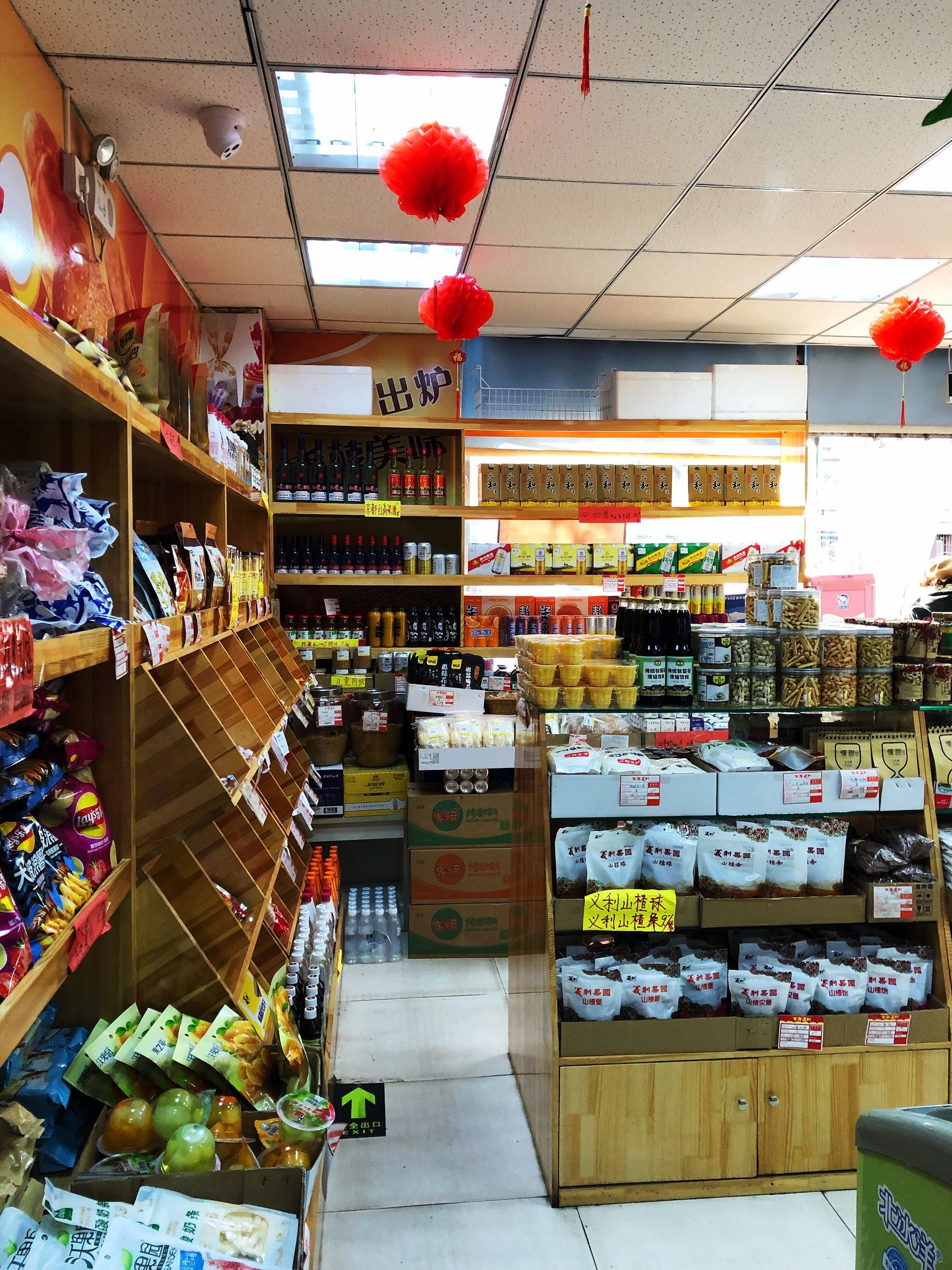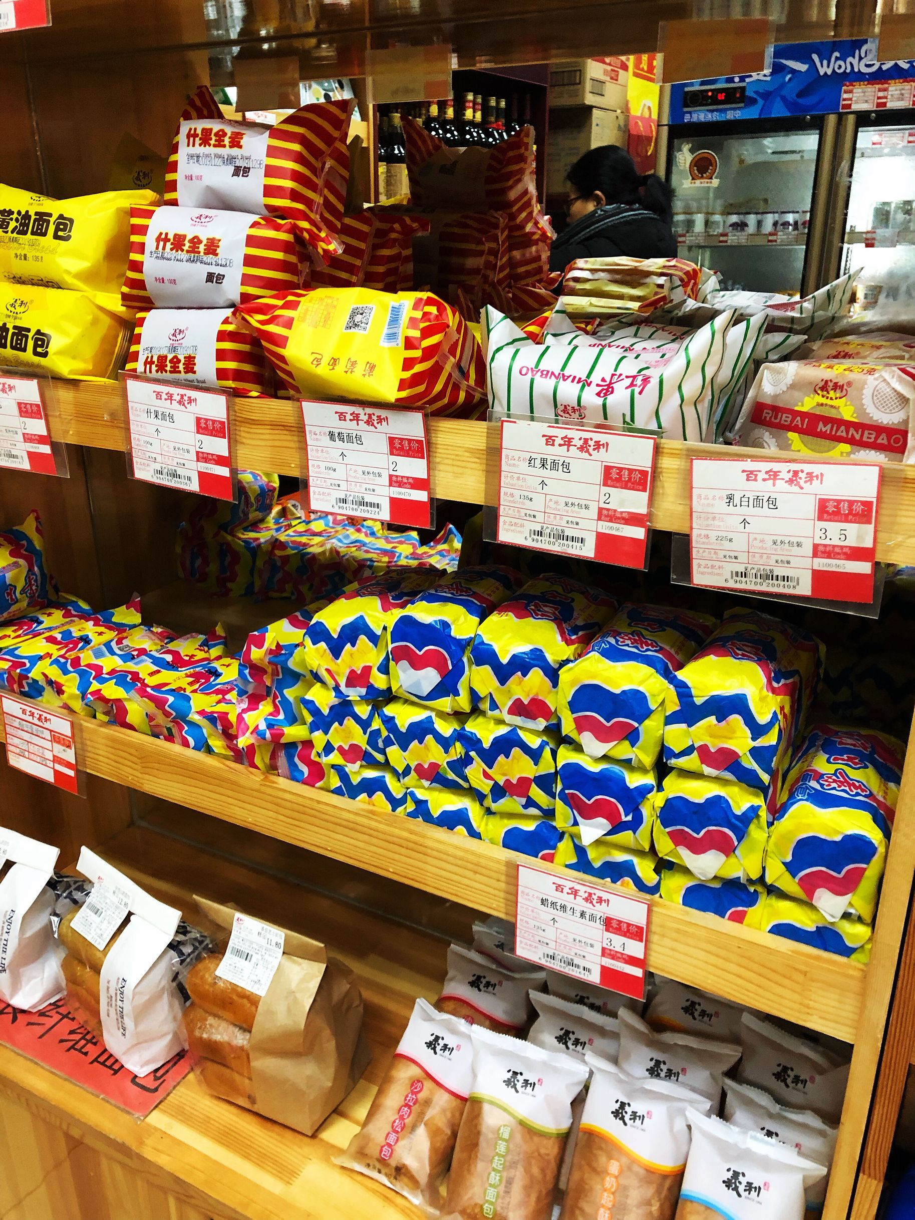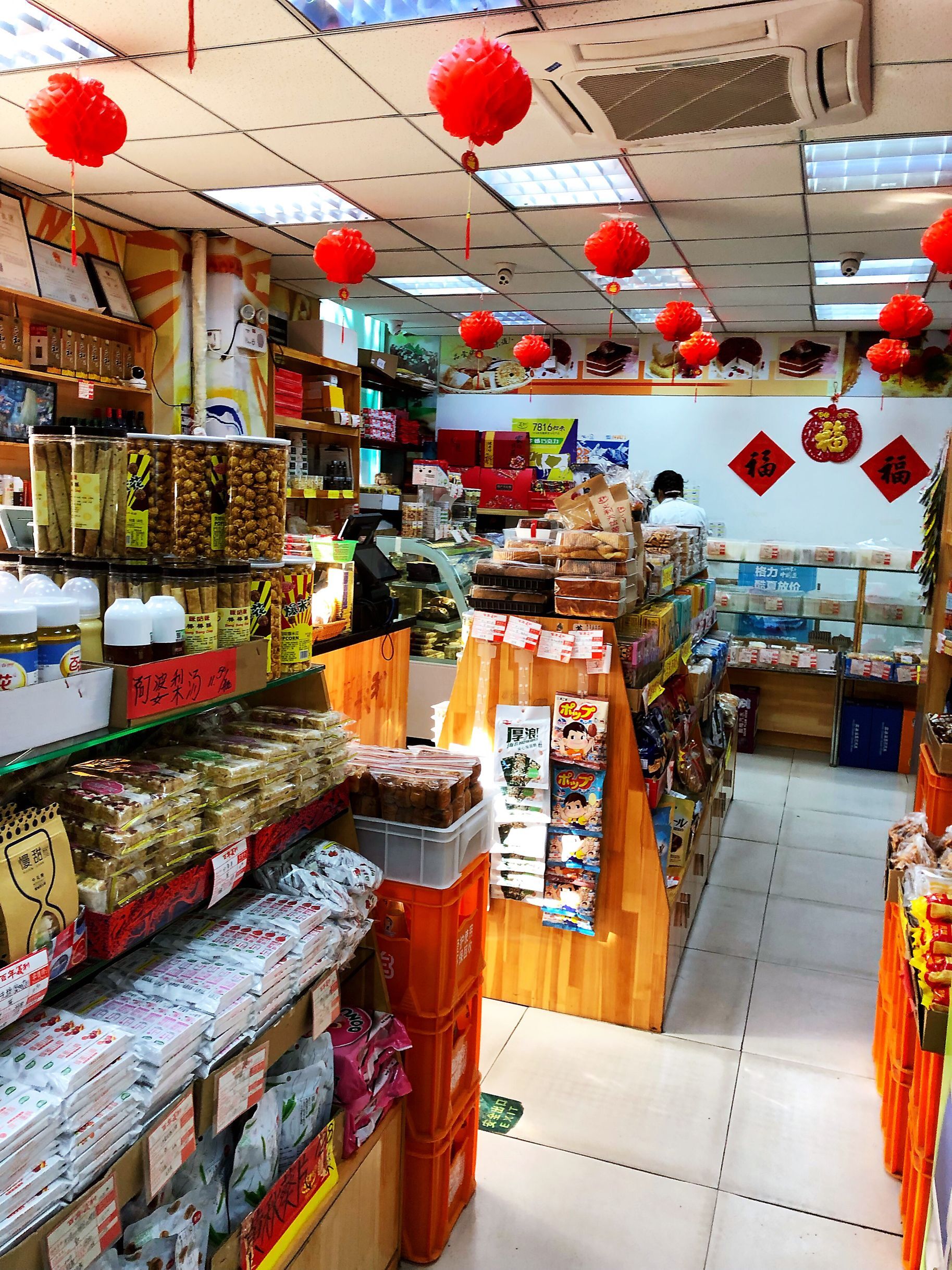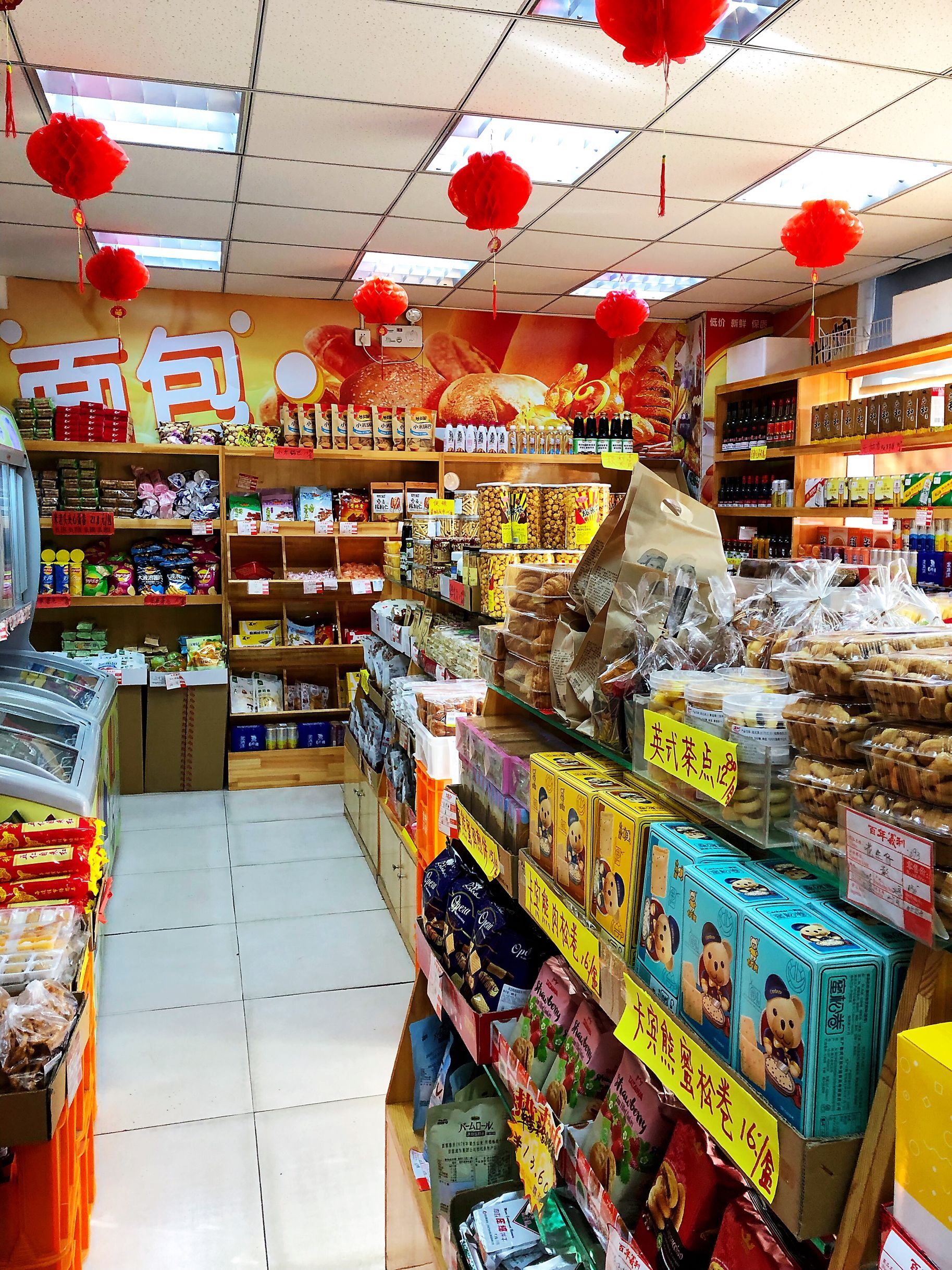 面积不大,里面货架上的东西也比较杂乱,包括面包,蛋糕,糖果,饮料,零食还有冷饮。我是下午两三点到店,几乎没有顾客。