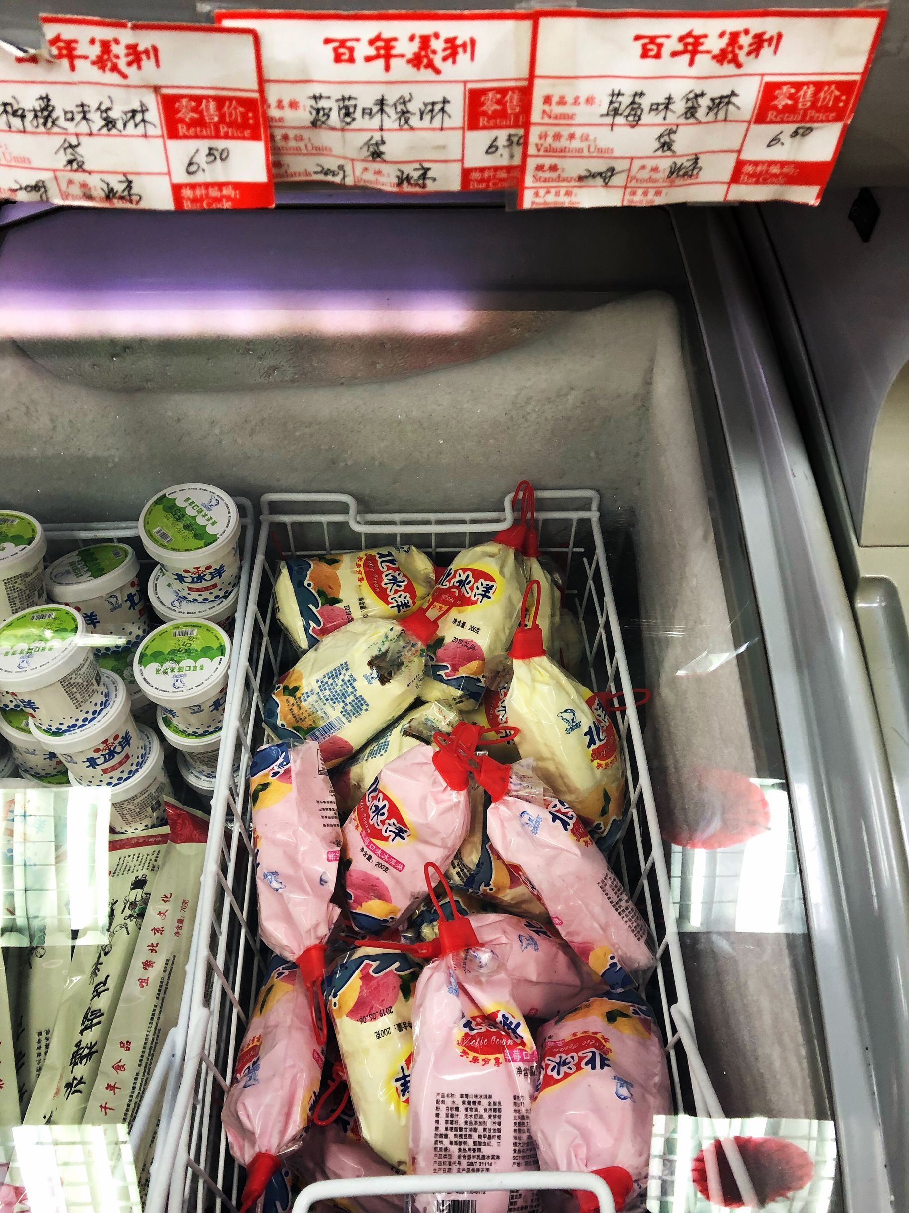 又是回忆杀,北冰洋袋淋,这可是老北京冰淇淋中的爱马仕啊,之前卖到断货,看到袋淋就想起了小时候吃的小豆冰棍,你们还记得吗?这是暴露年龄的食品,大爷大妈推着冰棍车,上面盖着棉被,一下学小伙伴们就围着冰棍车,几分一毛钱一根吧?冰棍上的小豆颗粒饱满,厚厚一层。那时候吃起来真好吃,现在没有卖的了吧。