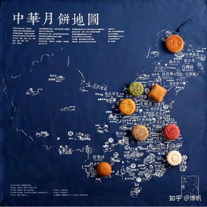 地图上一目了然的标注出各式风格的月饼。八方月饼来自祖国四面八方,分别代表不同区域的中秋文化和饮食特色,包括京式、津式、广式、台式、鲁式、滇式、潮式。