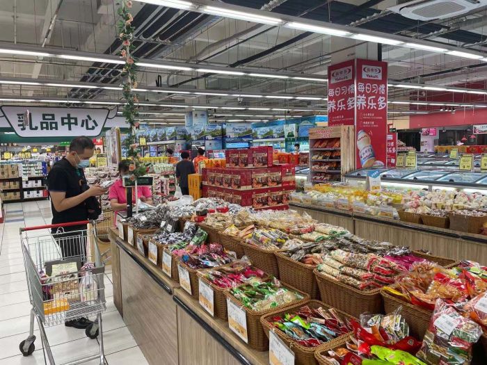 随着中秋节临近,各商超如米面油、肉蛋奶、水果等生活必需品类销量在逐渐增加。为应对即将到来的销售高峰,不少商超已按照超同期10%的备货量进行必需品货物的储备。作为与市民生活密切相关的市场经营单位,目前,新区各商超也已加大检查力度与频次,做好常态化防控措施,保证市民能够安心购物。