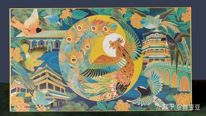 设计师运用现代插画表现手法融于传统绘画,历今弥香,灵活生动,将传统文化与现代工艺交融于一体,演绎了当今时尚版的百鸟朝凤,彰显国风气派。