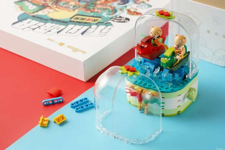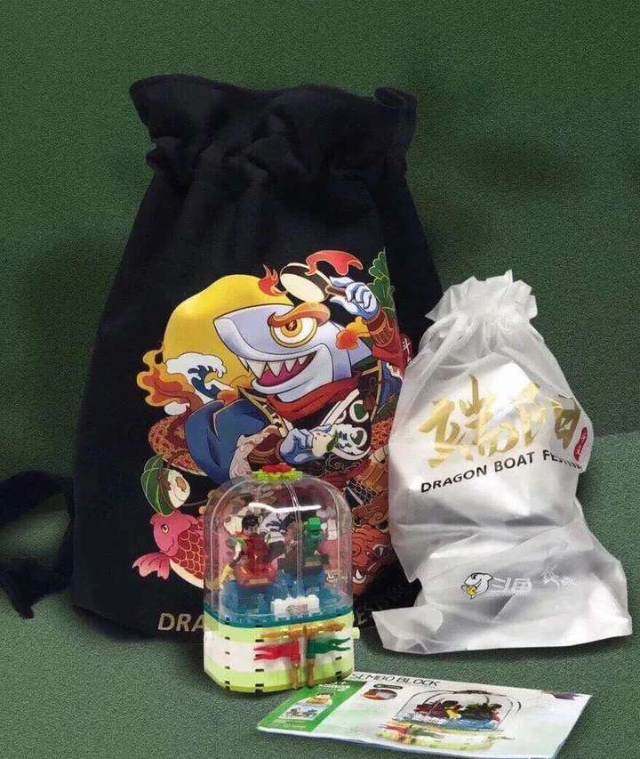 在玩上面从不会输的斗鱼,在礼盒上也如此。一袋祝福里除了粽子,还有定制的积木玩具,好吃的好玩的一起拿走!