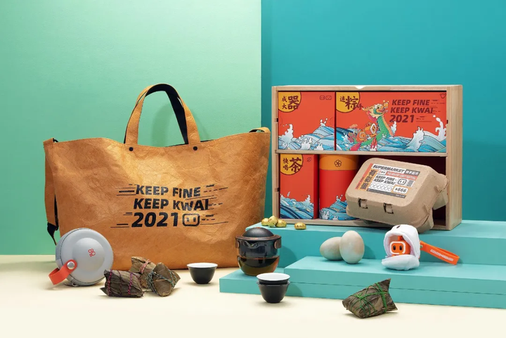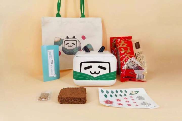相比去年壕无人性的礼盒,今年的福袋也很丰富有趣!里面除了粽子茶叶外,还有飞船造型的便携茶具,防水的杜邦纸背包和定制快手公仔彩蛋,非常别出心裁,丰富又实用。