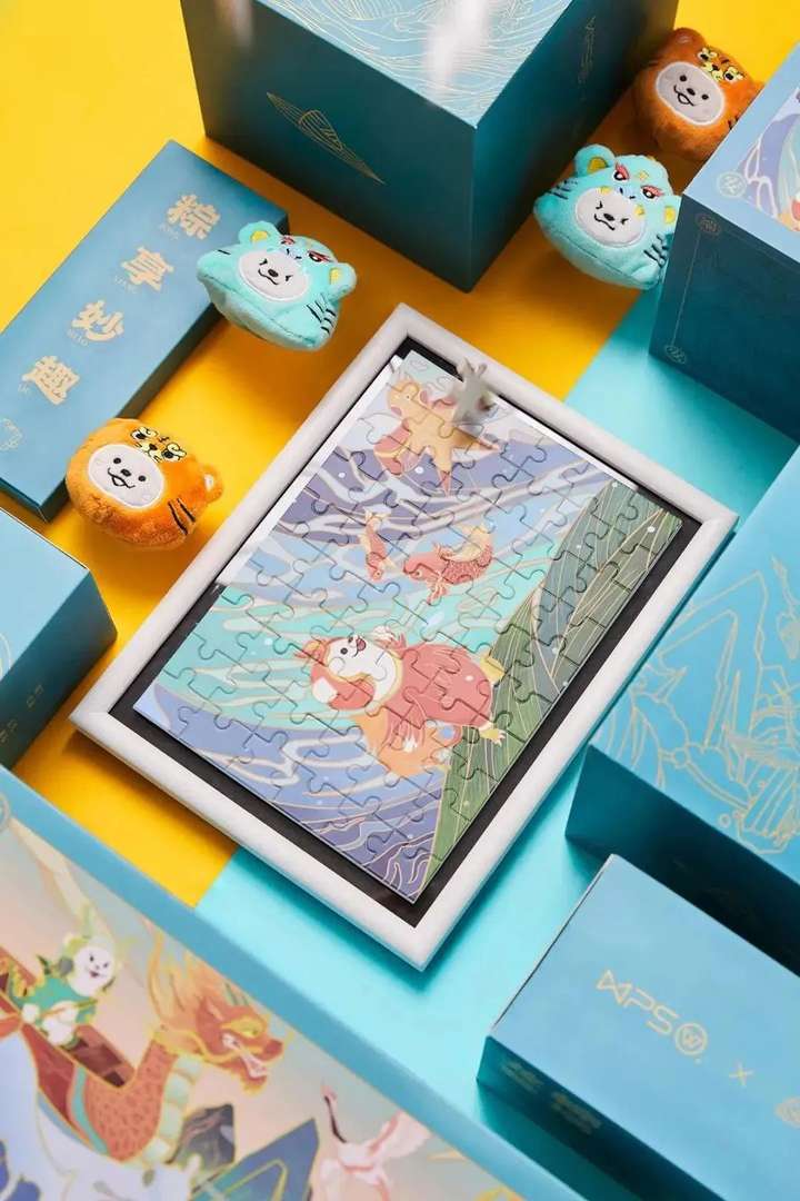 金山的礼盒也是将端午元素与品牌玩偶金小獴结合起来绘制了封面图案。礼盒内含艾虎形象的水杯、拼图、香囊等端午周边礼品,传递了浓浓的节日氛围。