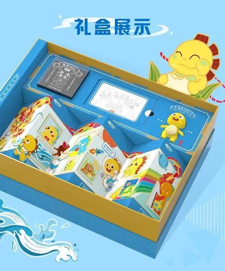 礼盒充满童趣风,准备了小朋友爱的手办盲盒、魔法贺卡等。以插画风呈现的卡通人物,为礼盒增添了一些俏皮可爱。