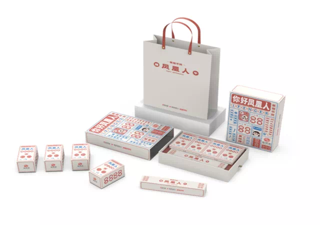 整个礼盒外表设计有点像近代的大字报,色调上选用了凤凰网的西瓜红和蓝色为主。复古风设计为了致敬凤凰卫视开播25周年。礼盒表面的内容除了节日祝福外,也表达了对凤凰人期许,体现了独特的礼盒理念。