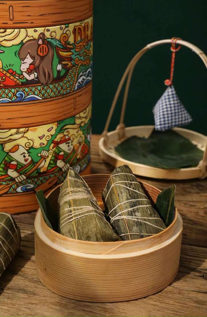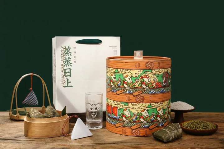 独特的蒸笼外形,寓意着对每人蒸蒸日上的祝福。礼盒外部也是手绘风的可爱插画,还有稀奇艺术的杯子。包装质朴的粽子和香囊,给予更多节日的仪式感。