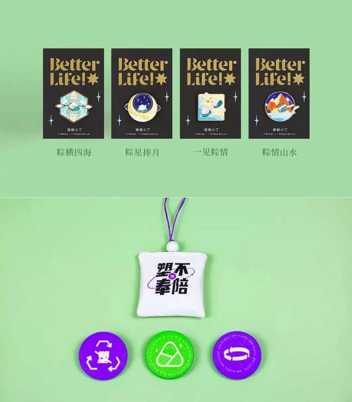 外包装依旧是环保实用的杜邦纸背包,礼盒里面内容丰富有趣。有全新为端午创建ip形象「屈小原+丁小棕」外盒包装的粽子、薄荷香囊,还有丁小粽金属徽章的盲盒。精美到每个我都想要!