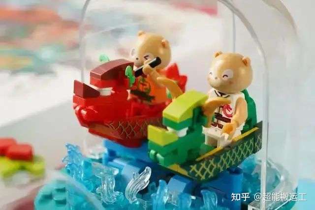 里面的赛龙舟小积木拼上之后,能当个不错的小摆件,让桌面不显那么空~