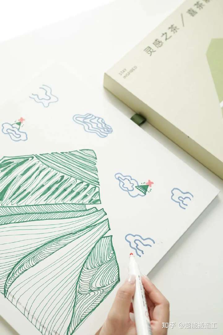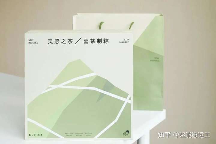 今年的喜茶端午礼盒是很受欢迎的极简主义风格,包装上的图案既像小路和山包,又像一只大胖粽子,清新有趣。