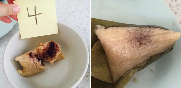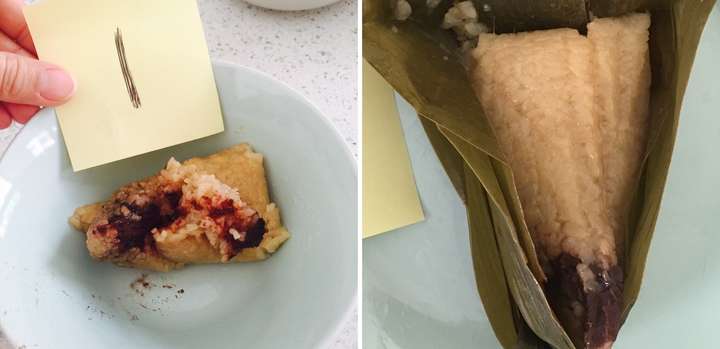 本次评测中豆沙粽刚出锅的样子