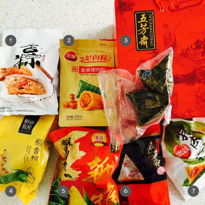 经过筛选,我们挑选了以下7个各大电商平台为常见的品牌的肉粽和豆沙粽作为本期评测选品:
