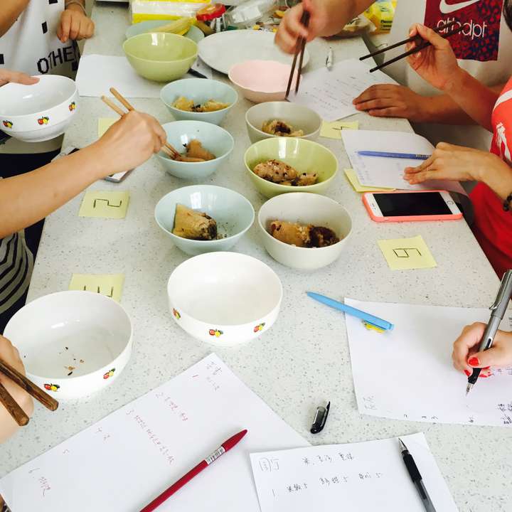 - 5.评测人员进行第五次试吃,交流对每碗粽子的看法,并由工作人员完成记录。