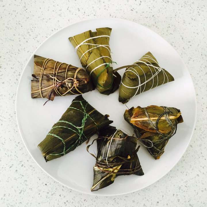 - 3.捞出粽子置于碗中,并根据彩线颜色为每碗做好标号;
