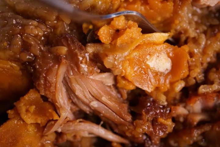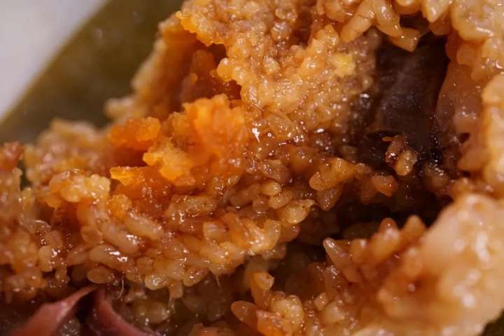 糯米与肉汁的香咸的融合在一起,鲜肉、板栗,
