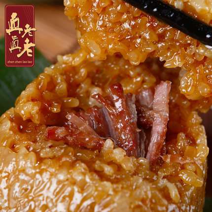 真真老老蛋黄鲜肉粽,引领肉粽届蛋黄潮流!肥肉已经煮化在了米里,粽米颗颗闪着迷人的光泽,粘糯而不烂肉香十足,现挖的咸蛋黄流沙多油,一颗就能征服全宇宙